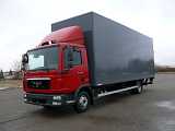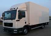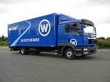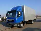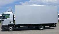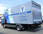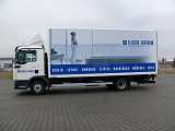 Leicht- Kofferaufbau mit Portaltüren und Beschriftung | Leicht- Kofferaufbau mit Portaltüren | Plywoodkofferaufbau mit Ladebordwand und Seitenschiebetür |